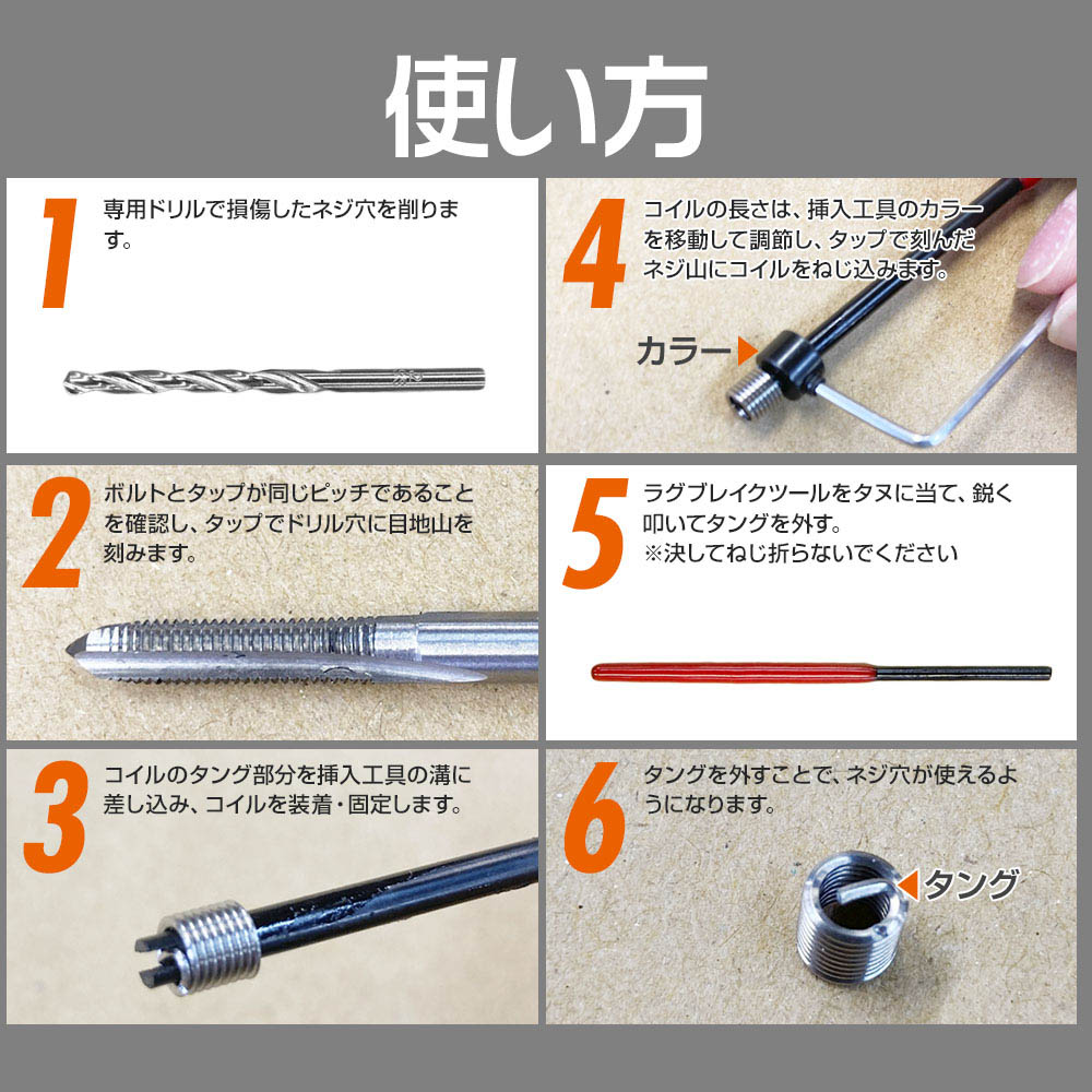 構成内容:ドリル、タップ、コイル、挿入工具、ラグブレークツール