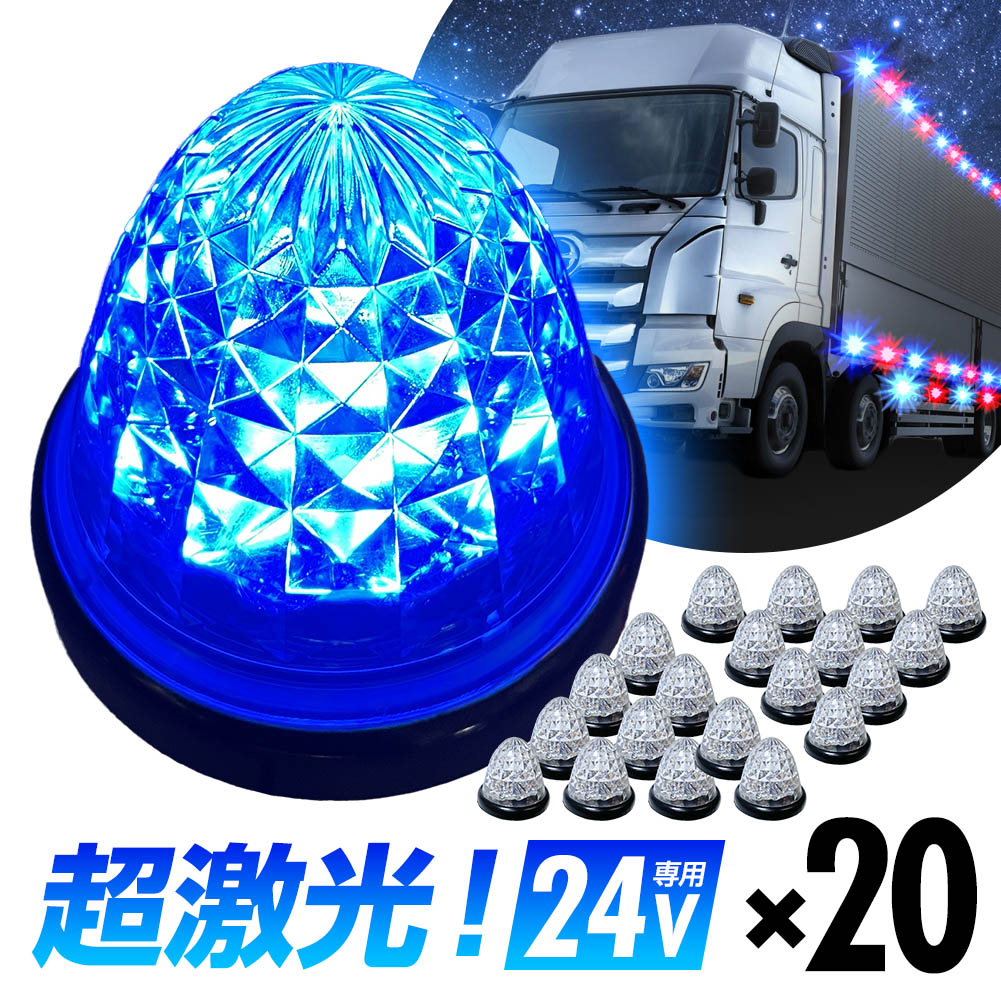 16連LED トラック 24v LED 青発光 青 サイドマーカー デイライト 24V マーカーランプ バスマーカー クリスタルカット クリアレンズ 20個set