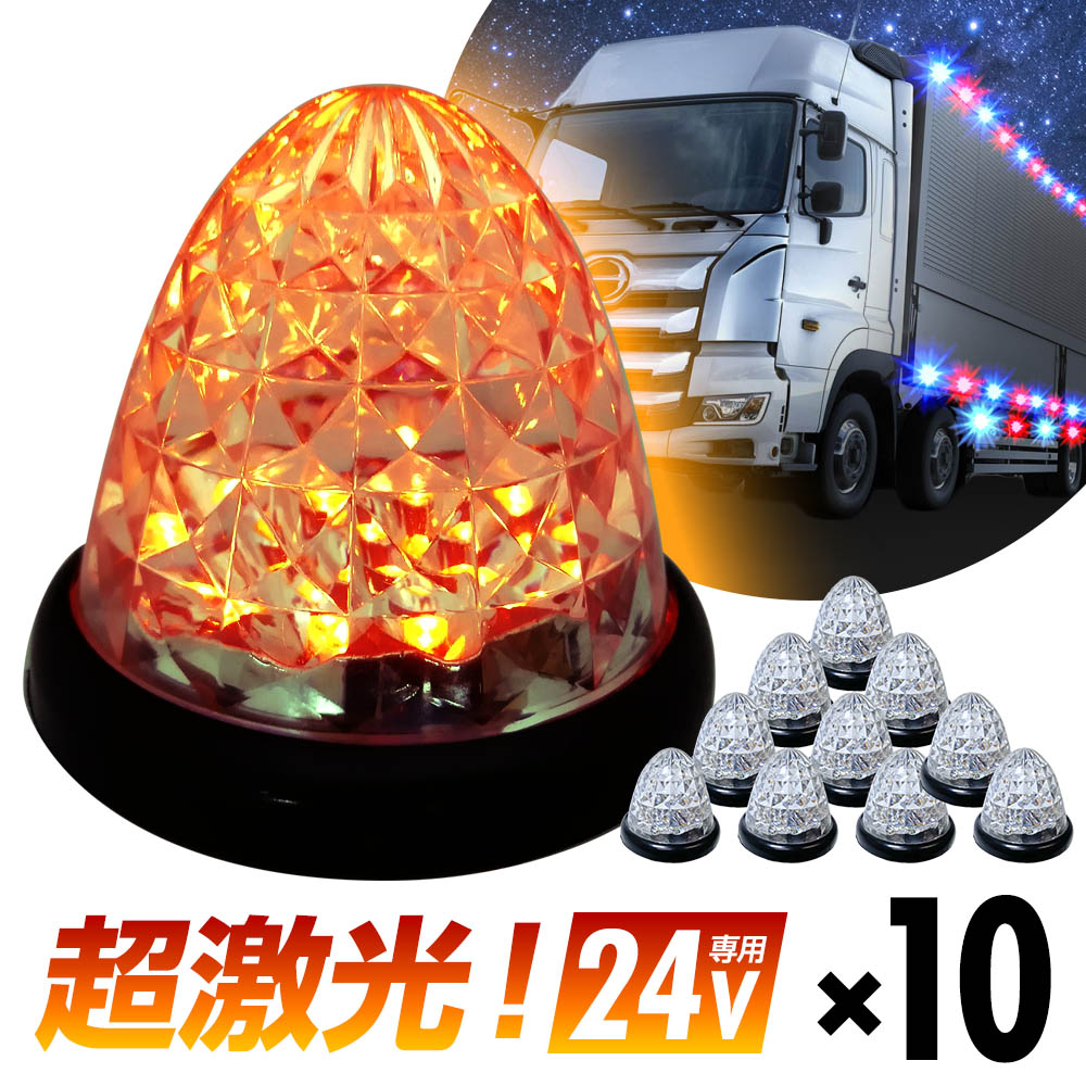 16連LED トラック 24v LED オレンジ サイドマーカー デイライト 24V マーカーランプ バスマーカー クリスタルカット クリアレンズ 10個set