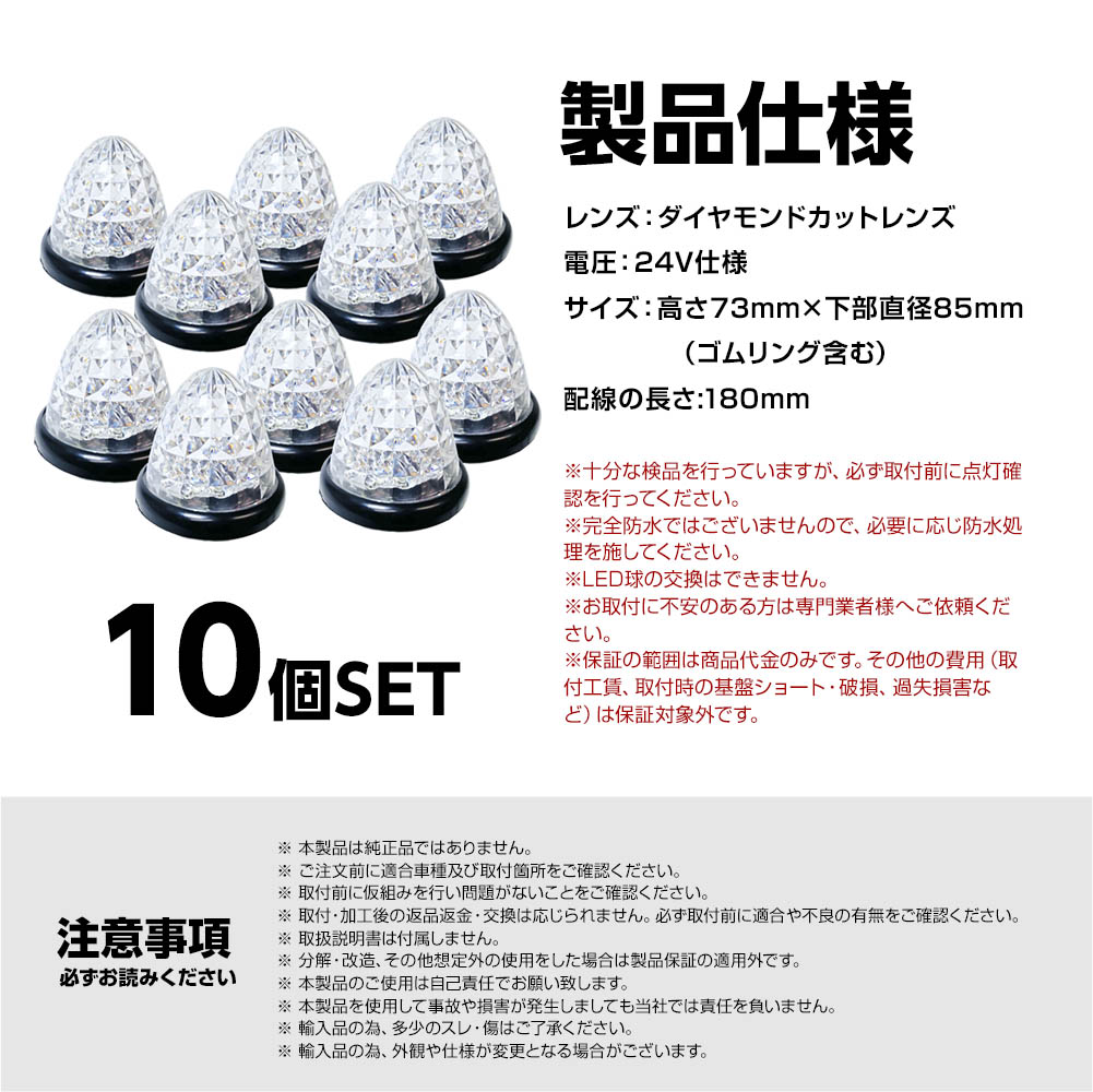 16連LED トラック 24v LED 白発光 白 サイドマーカー デイライト 24V マーカーランプ バスマーカー クリスタルカット クリアレンズ 10個set