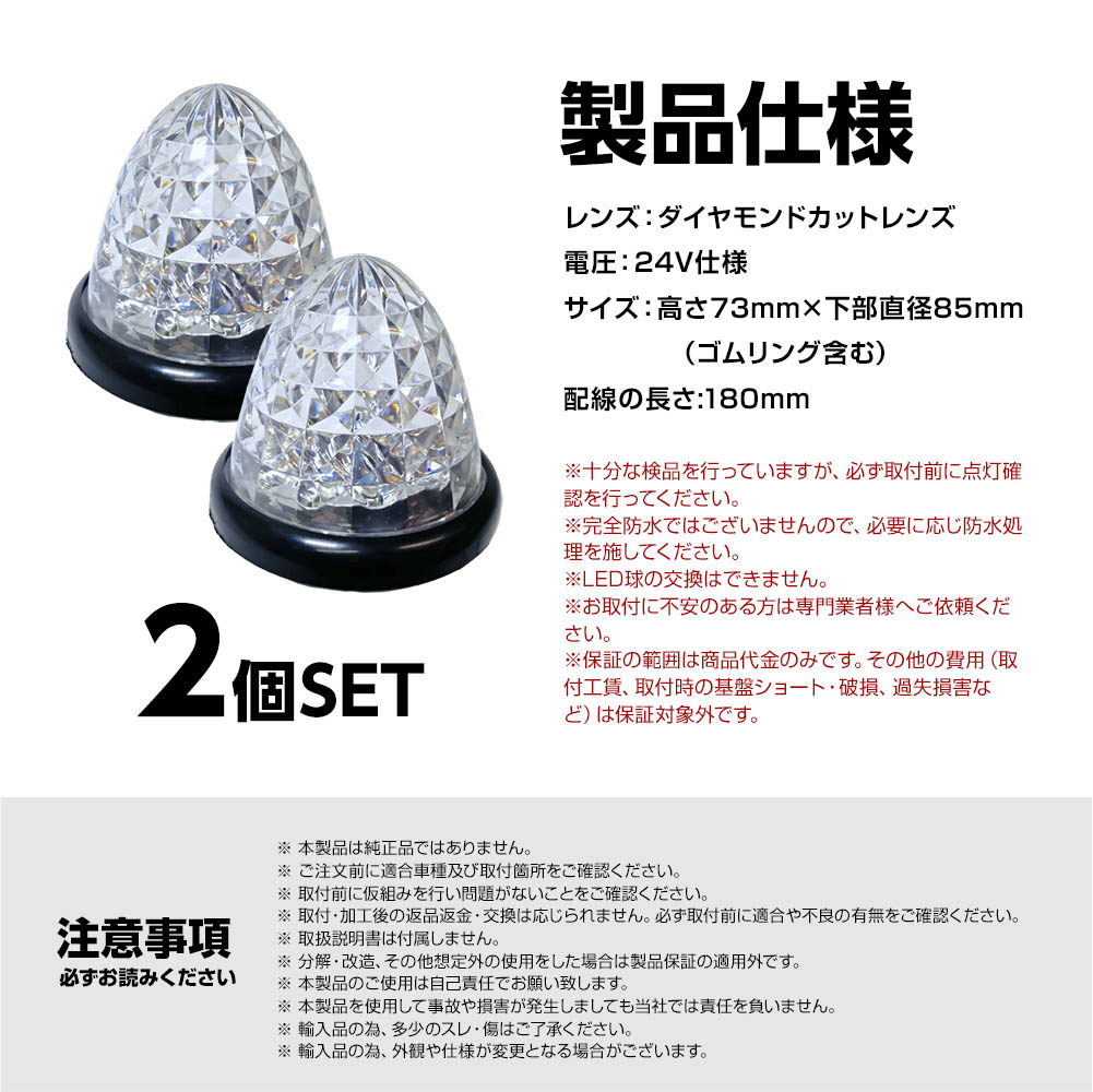 16連LED トラック 24v LED 白発光 白 サイドマーカー デイライト 24V マーカーランプ バスマーカー クリスタルカット クリアレンズ 2個set