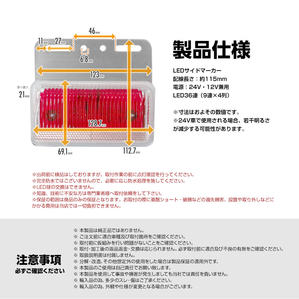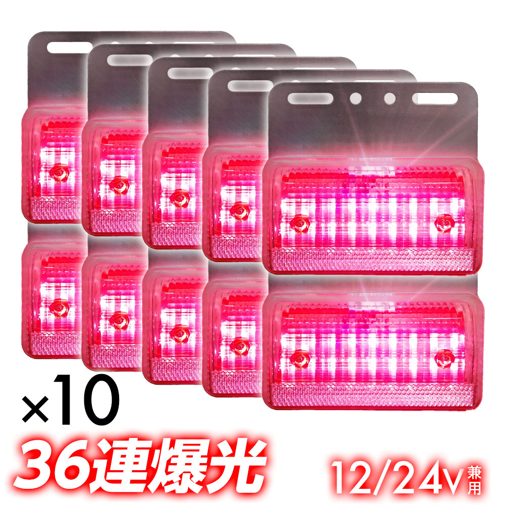 トラック LEDサイドマーカー 角型 計40連 12V 24V 兼用10個 車幅灯 路肩灯 車高灯 角マーカーランプ レッド 赤