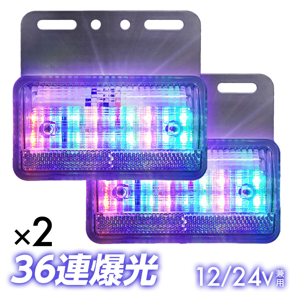 トラック LEDサイドマーカー 角型 計40連 12V 24V 兼用2個 車幅灯 路肩灯 車高灯 角マーカーランプ 七色 レインボー