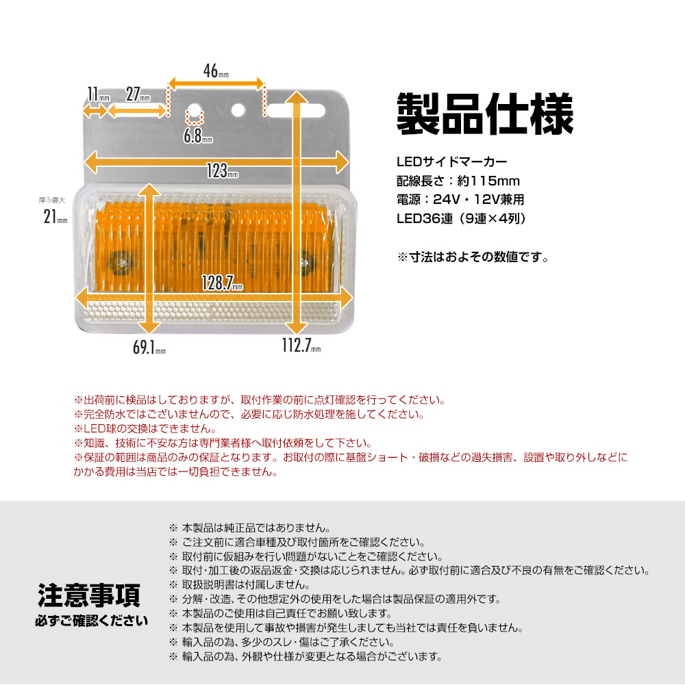 トラック LEDサイドマーカー 角型 計40連 12V 24V 兼用 1個 車幅灯 路肩灯 車高灯 角マーカーランプ イエロー 黄色