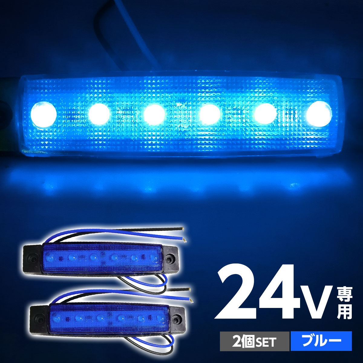 トラック LEDサイドマーカー 角型 24V専用 片側 6連LED サイドマーカー 2個set 車幅灯 路肩灯 車高灯 角マーカーランプ ブルー 青