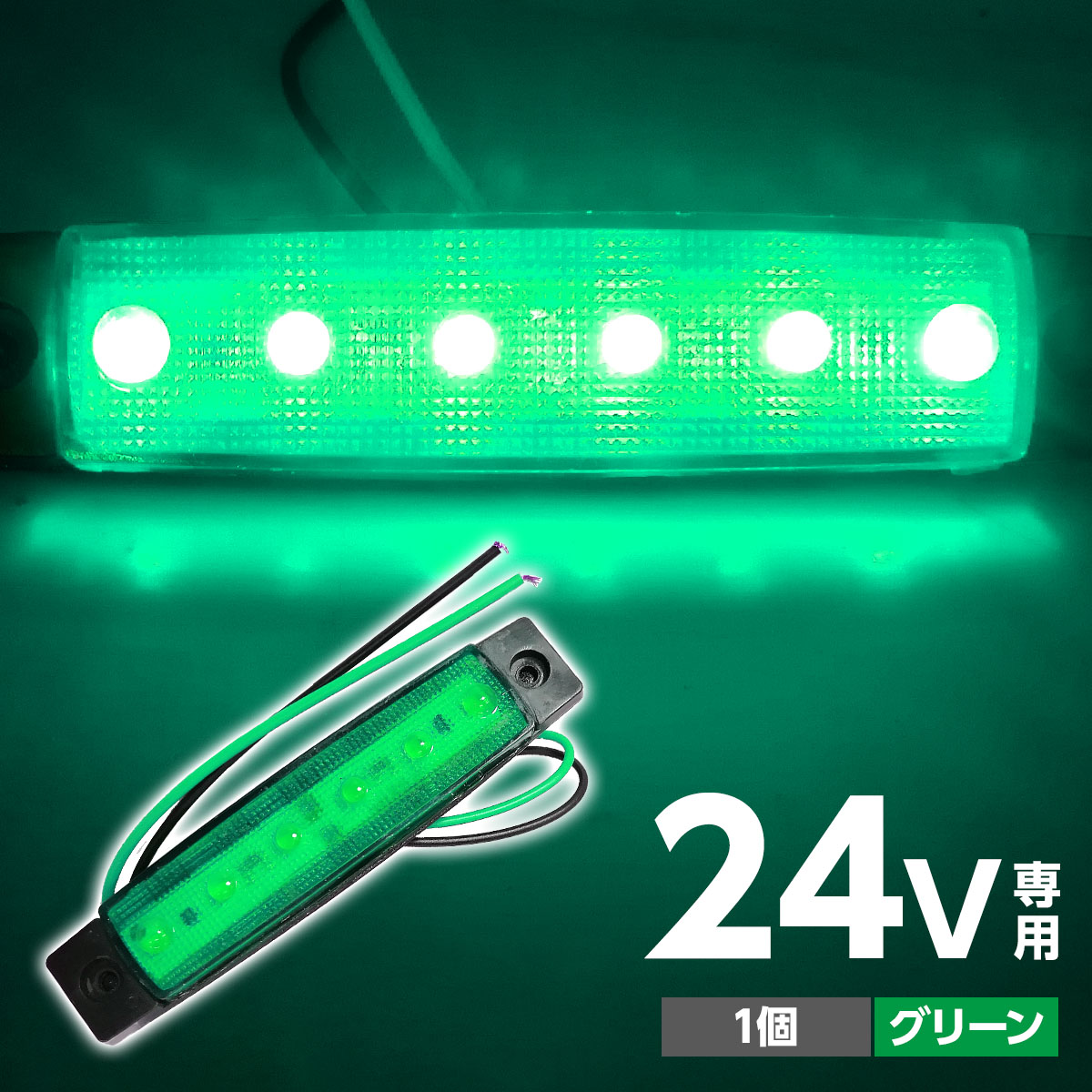 トラック LEDサイドマーカー 角型 24V専用 片側 6連LED サイドマーカー 1個 車幅灯 路肩灯 車高灯 角マーカーランプ グリーン 緑