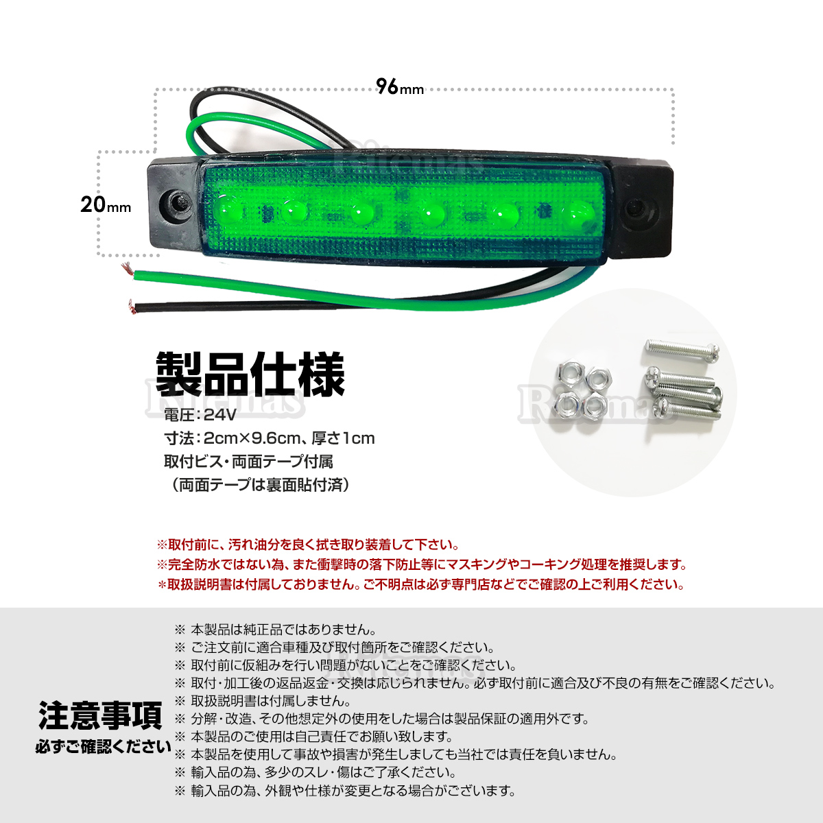 トラック LEDサイドマーカー 角型 24V専用 片側 6連LED サイドマーカー 10個set 車幅灯 路肩灯 車高灯 角マーカーランプ グリーン 緑