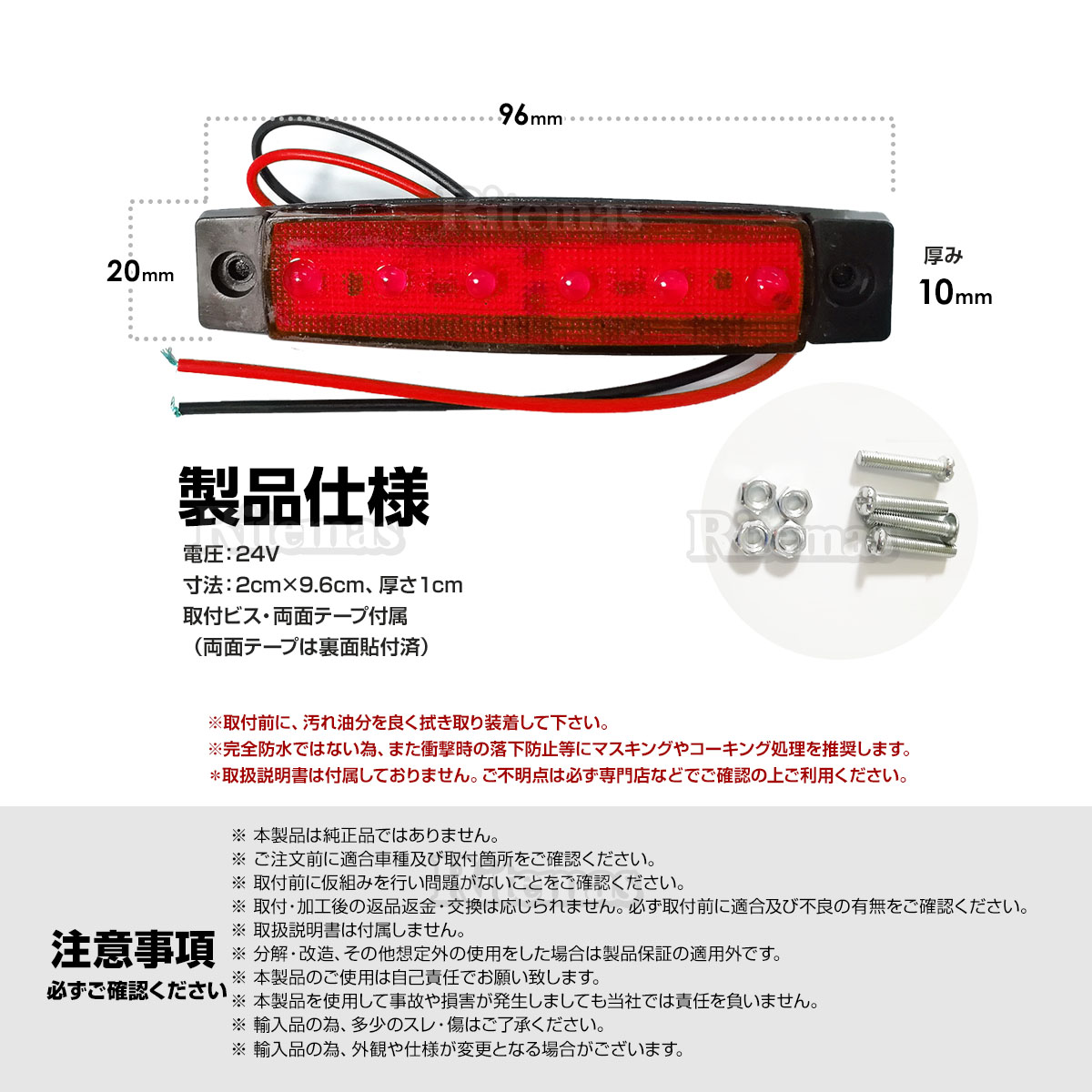 トラック LEDサイドマーカー 角型 24V専用 片側 6連LED サイドマーカー 10個set 車幅灯 路肩灯 車高灯 角マーカーランプ レッド 赤
