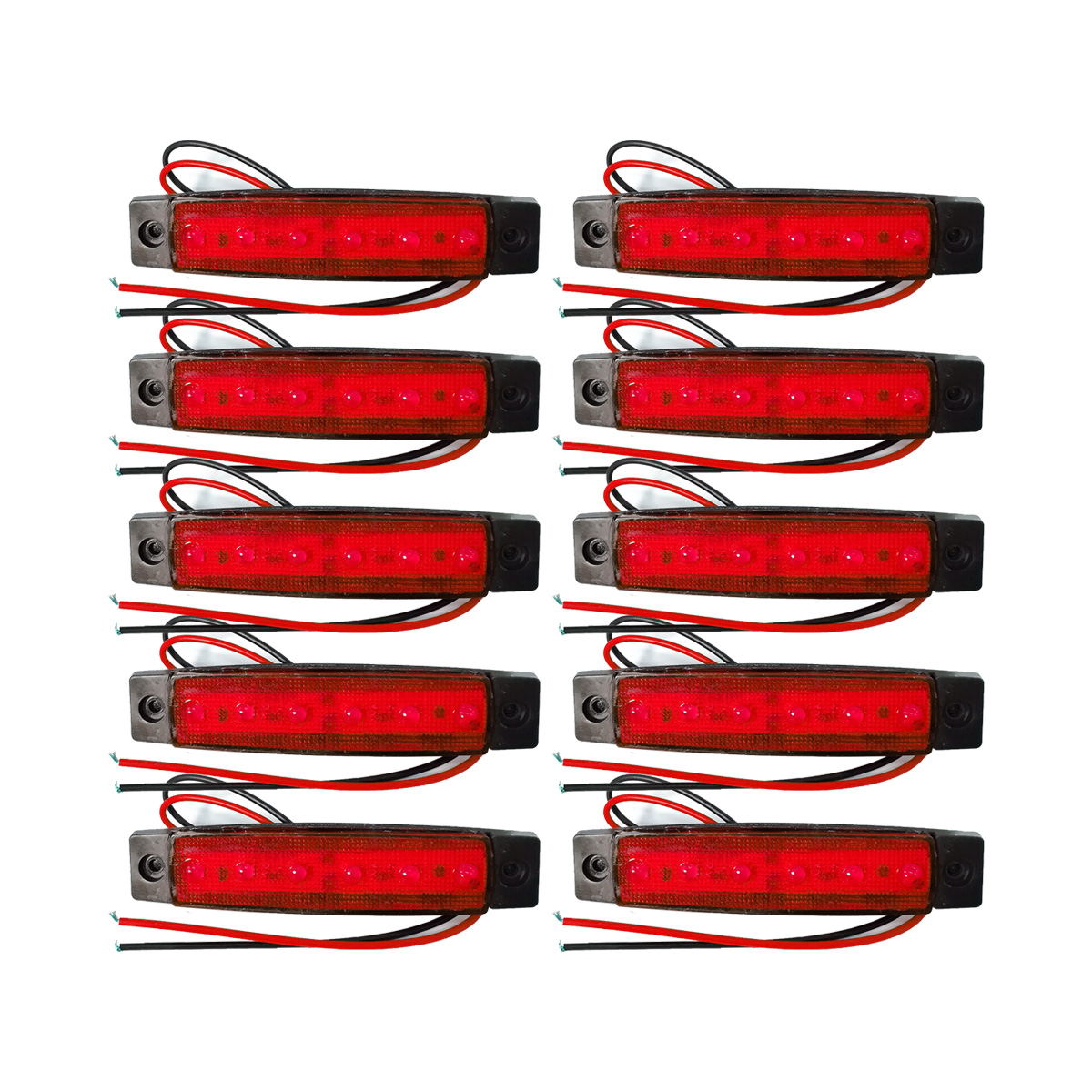 トラック LEDサイドマーカー 角型 12V専用 片側 6連LED サイドマーカー 10個set 車幅灯 路肩灯 車高灯 角マーカーランプ レッド 赤