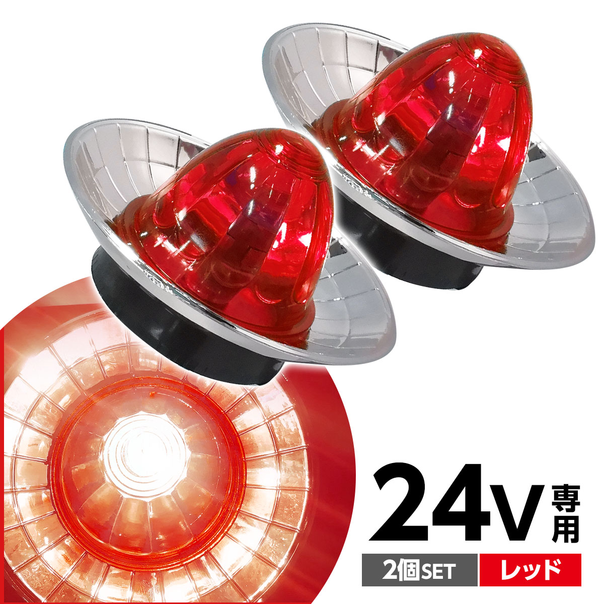 トラック サイドマーカー メッキリング マーカーランプ ドアサイドマーカー デコトラ 汎用 24 専用 車幅灯 路肩灯 車高灯 レッド 2個