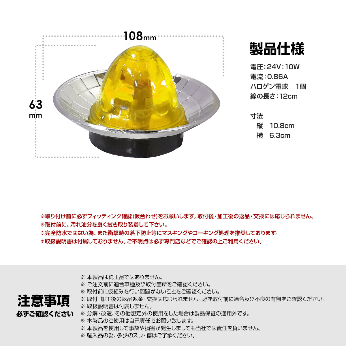 トラック サイドマーカー メッキリング マーカーランプ ドアサイドマーカー デコトラ 汎用 24 専用 車幅灯 路肩灯 車高灯 イエロー 1個