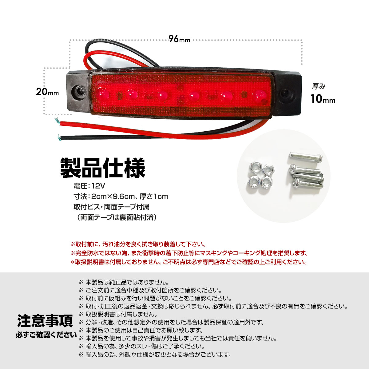 トラック LEDサイドマーカー 角型 12V専用 片側 6連LED サイドマーカー 10個set 車幅灯 路肩灯 車高灯 角マーカーランプ レッド 赤