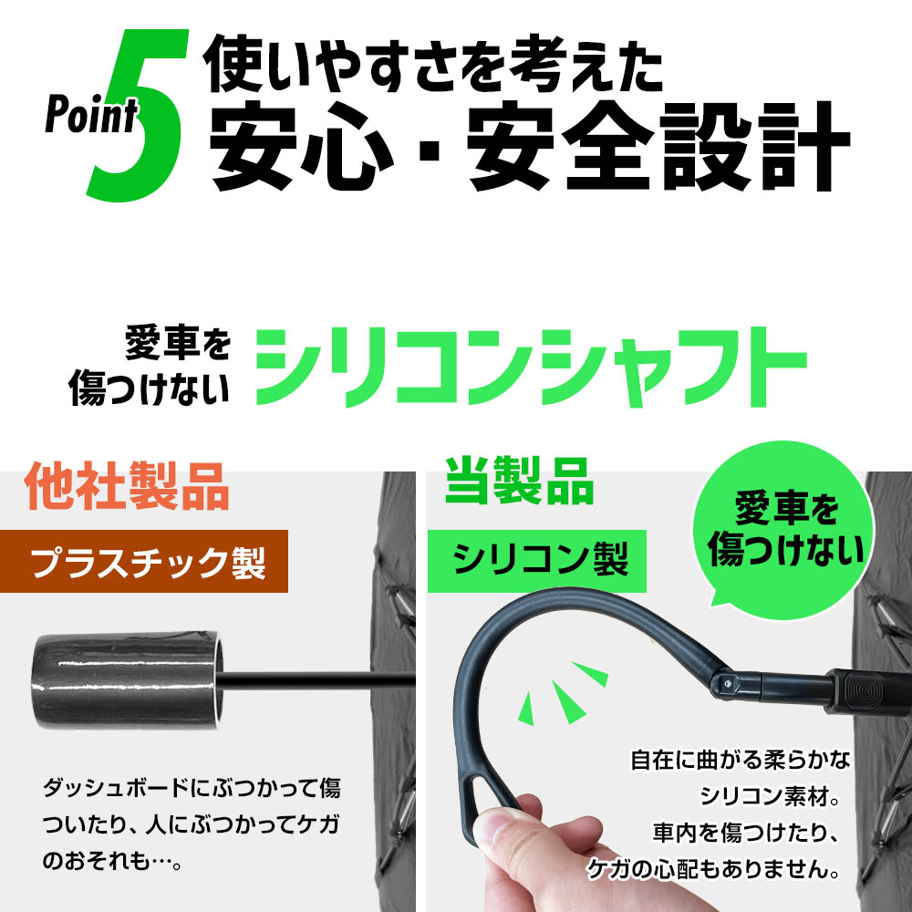 シャフト部分が紐仕様のため、ダッシュボードやインテリアを傷つけにくく、安心して使用可能。