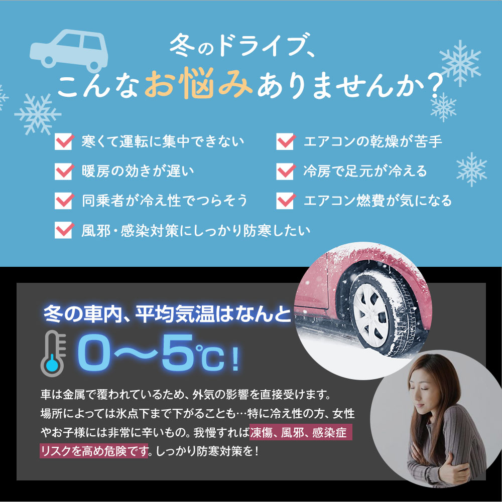 だれでも寒い車内を暖かく快適。