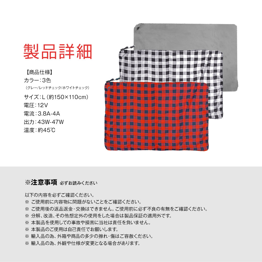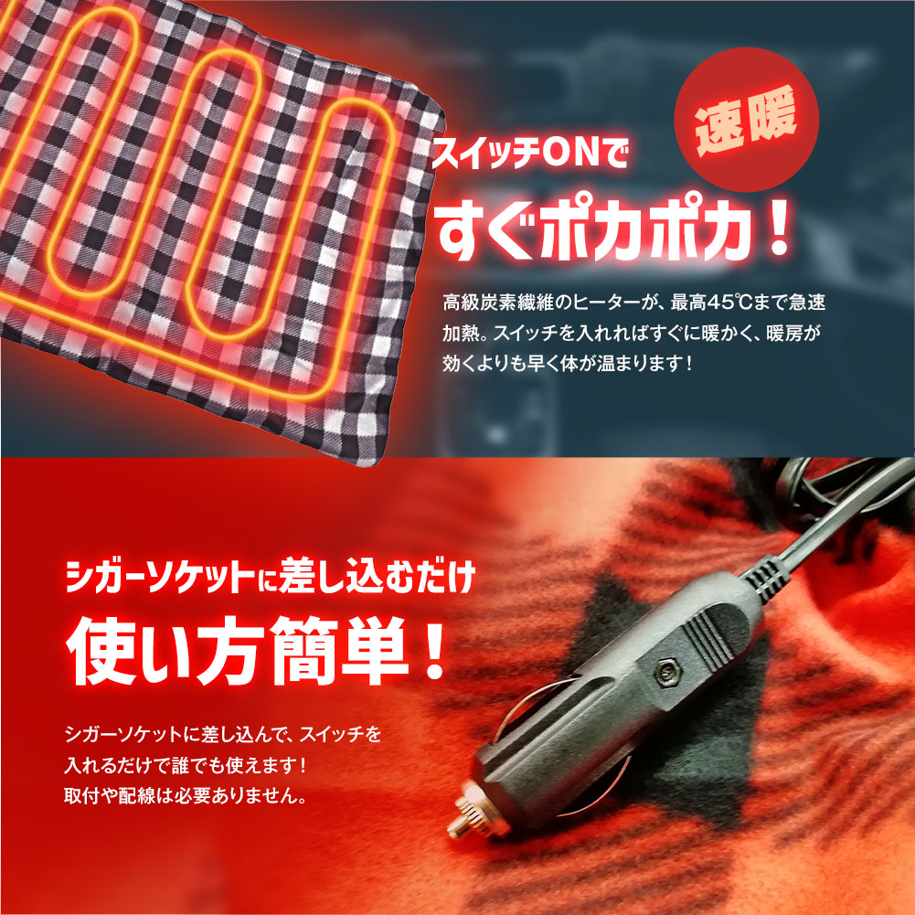 ヒートブランケット 12V 電気毛布 シガーソケット 車中泊 車載毛布 ひざ掛け 防寒 保温 暖房 車内 車載 ブランケット 毛布 車 大