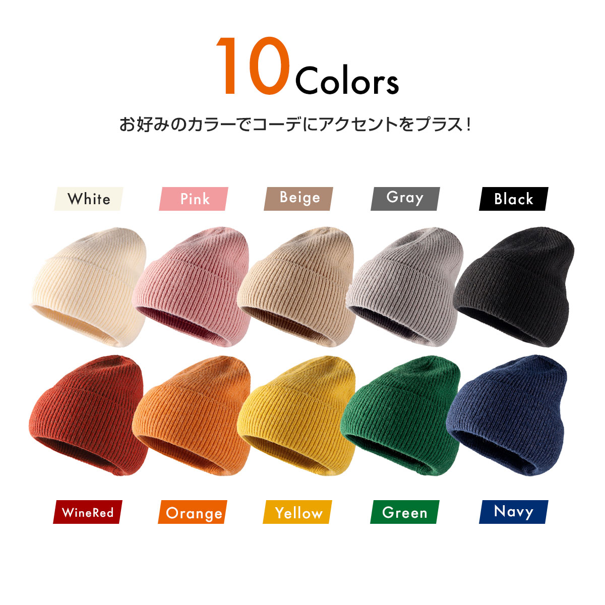 カラー:10色(ブラック/ホワイト/ワインレッド/ネイビー/ベージュ/グレー/イエロー/グリーン/ピンク/オレンジ)