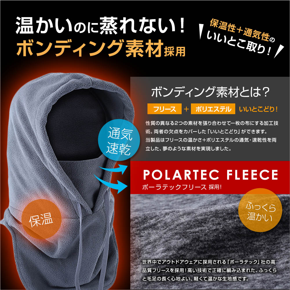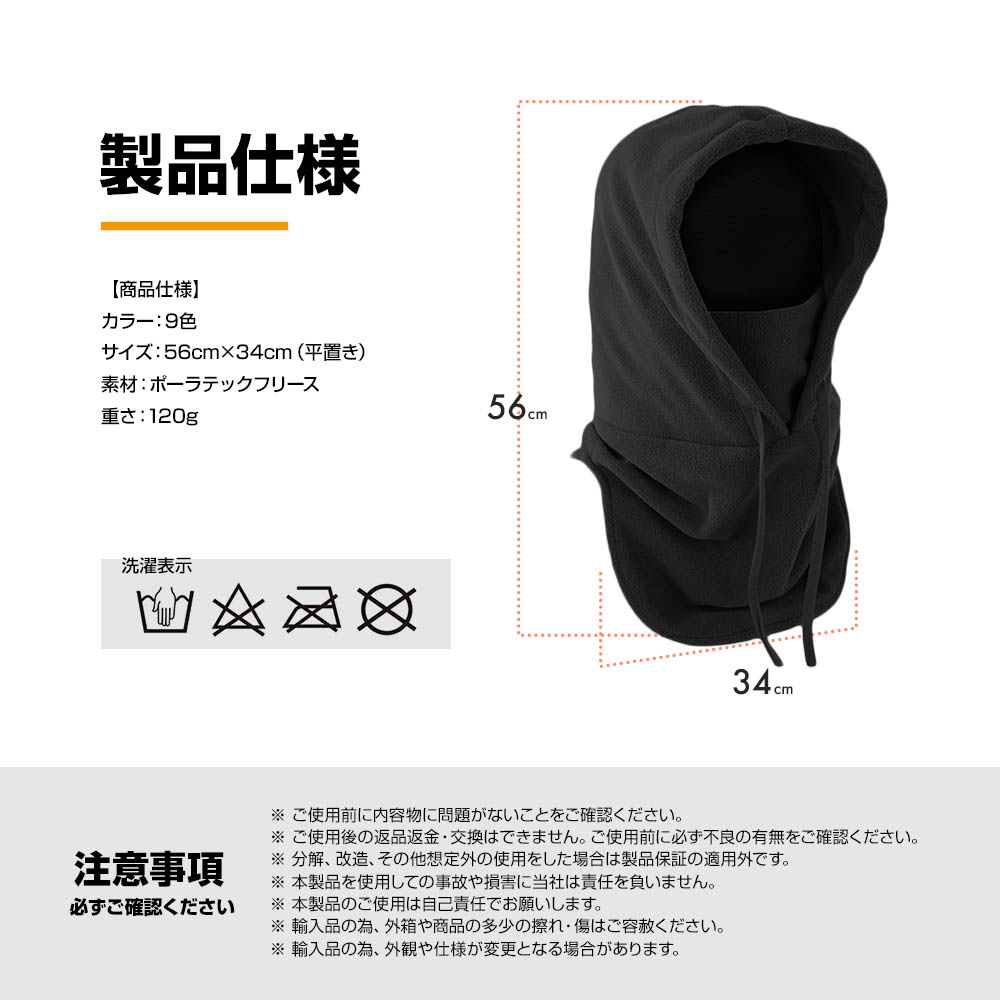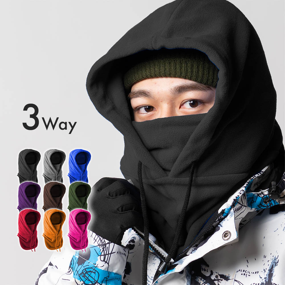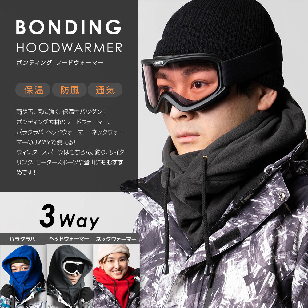 • フードウォーマー フェイスマスク ネックウォーマー 3way ボンディング フリース フェイスカバー 帽子 スノーボード スキー スノボー フリーサイズ 防寒 9色