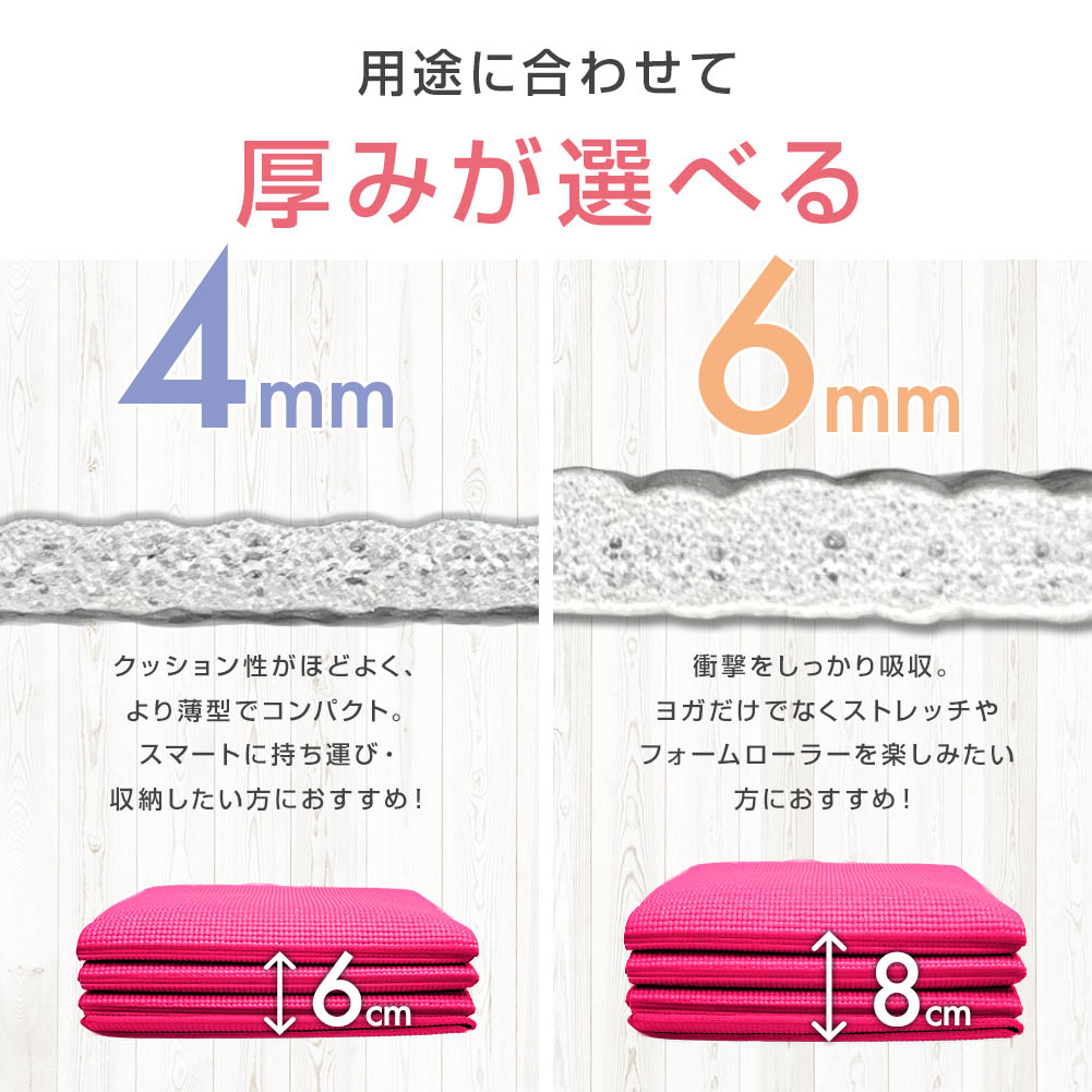 厚さ選択可能:4mmと6mmの厚みで、クッション性と安定性を自由に選べます。